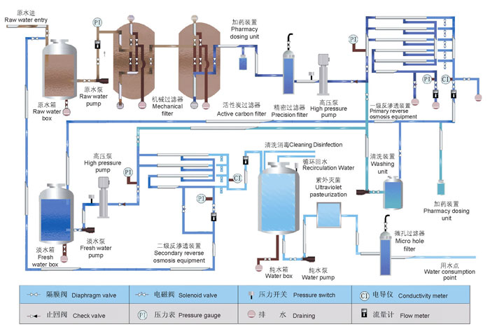 特點(diǎn): ·適用于原水含鹽量較低的地區(qū) ·產(chǎn)水總碳量(有機(jī)物)較低 ·無污染排放 ·結(jié)構(gòu)較為簡單